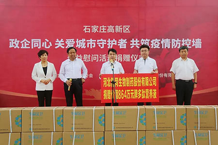 9月28日上午,智同生物联合石家庄高新区管委会举行以“政企同心 关爱城市守护者 共筑疫情防控墙”为主题的公益捐赠活动,为高新区管委会捐赠了价值864万元的脾多肽营养液,提高一线岗位工作人员的身体免疫力,用企业创新科研成果回馈社会,以实际行动关爱城市守护者,助力巩固疫情防控成果。